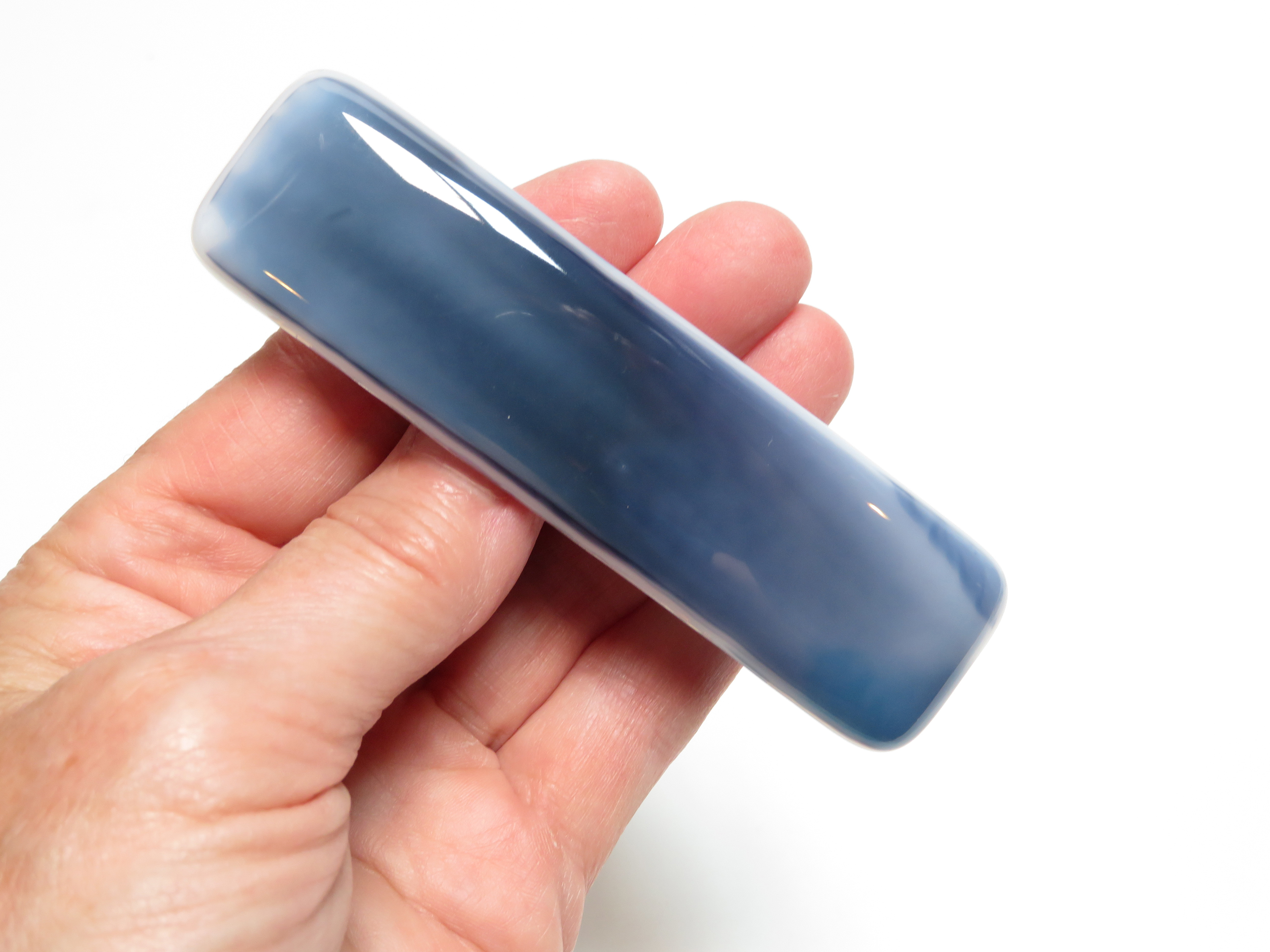 Designed for thick hair, it features rich shades of blue and white that flow together like polished stone, creating a one-of-a-kind accessory that’s both elegant and durable. Perfect for everyday wear or as a thoughtful gift.