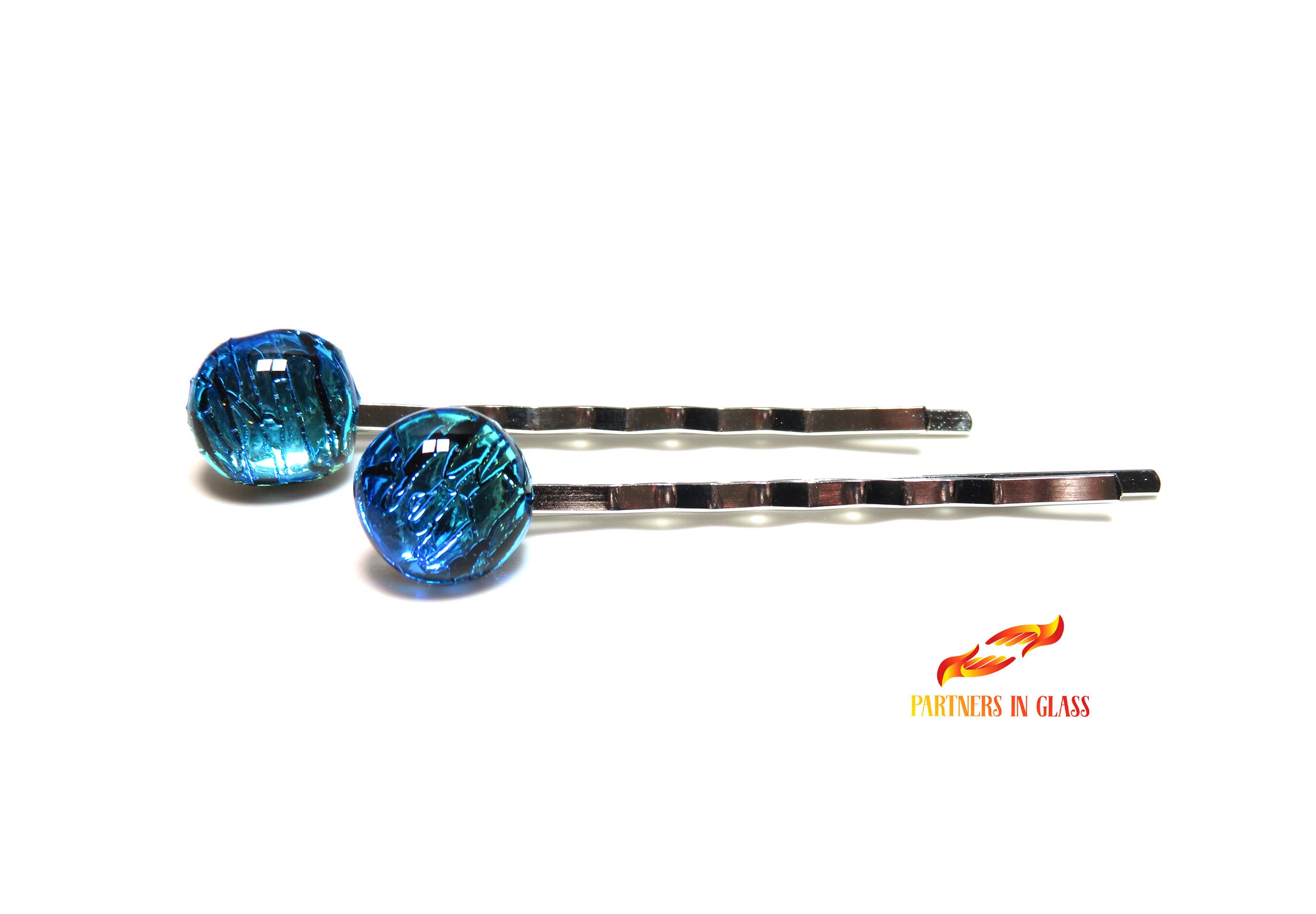These handmade dichroic glass bobby pins are a unique and stylish way to add a touch of color and elegance to your hair. The hair pins are made with dichroic glass, which is known for its shimmering, multi-colored appearance.