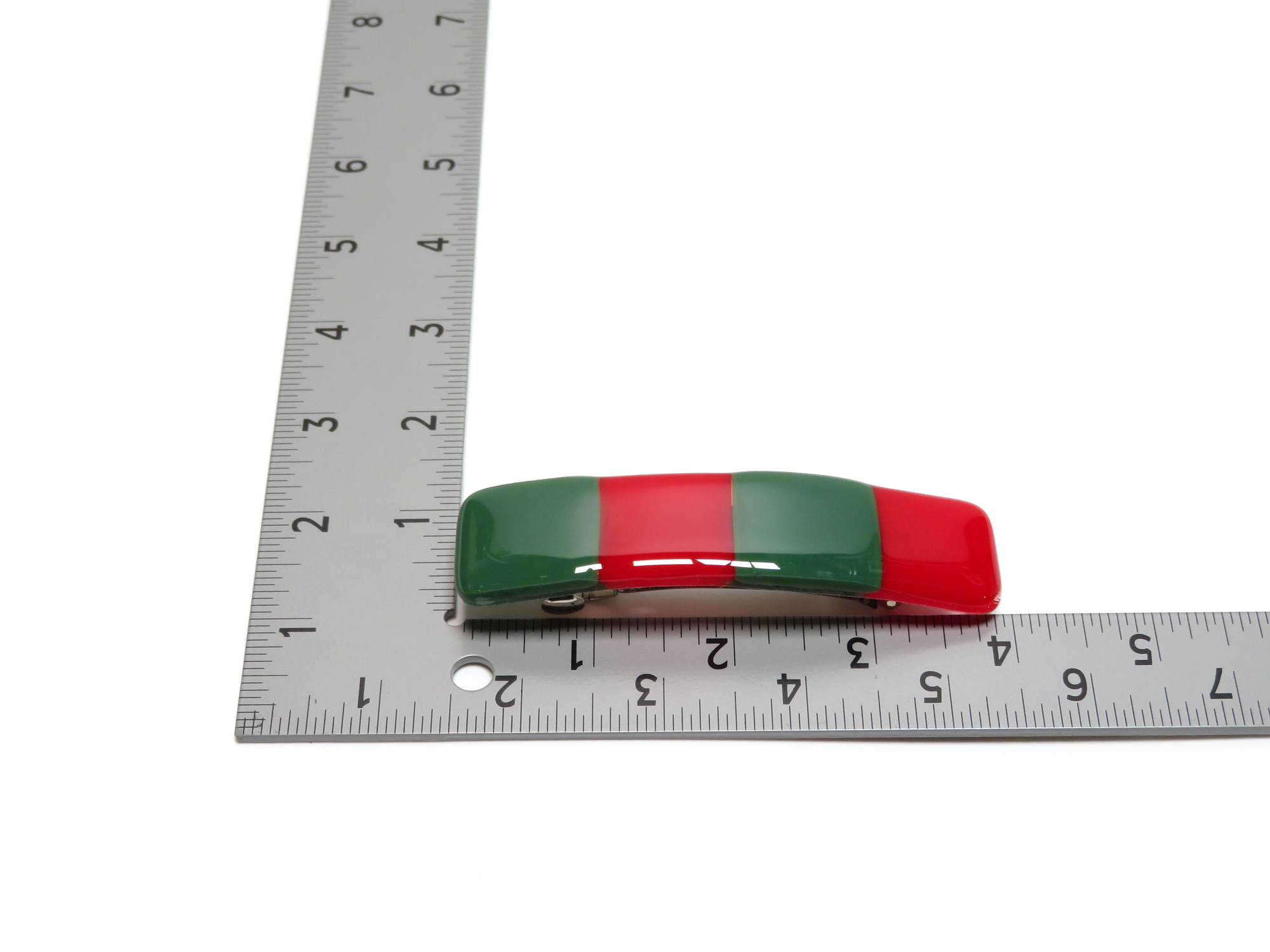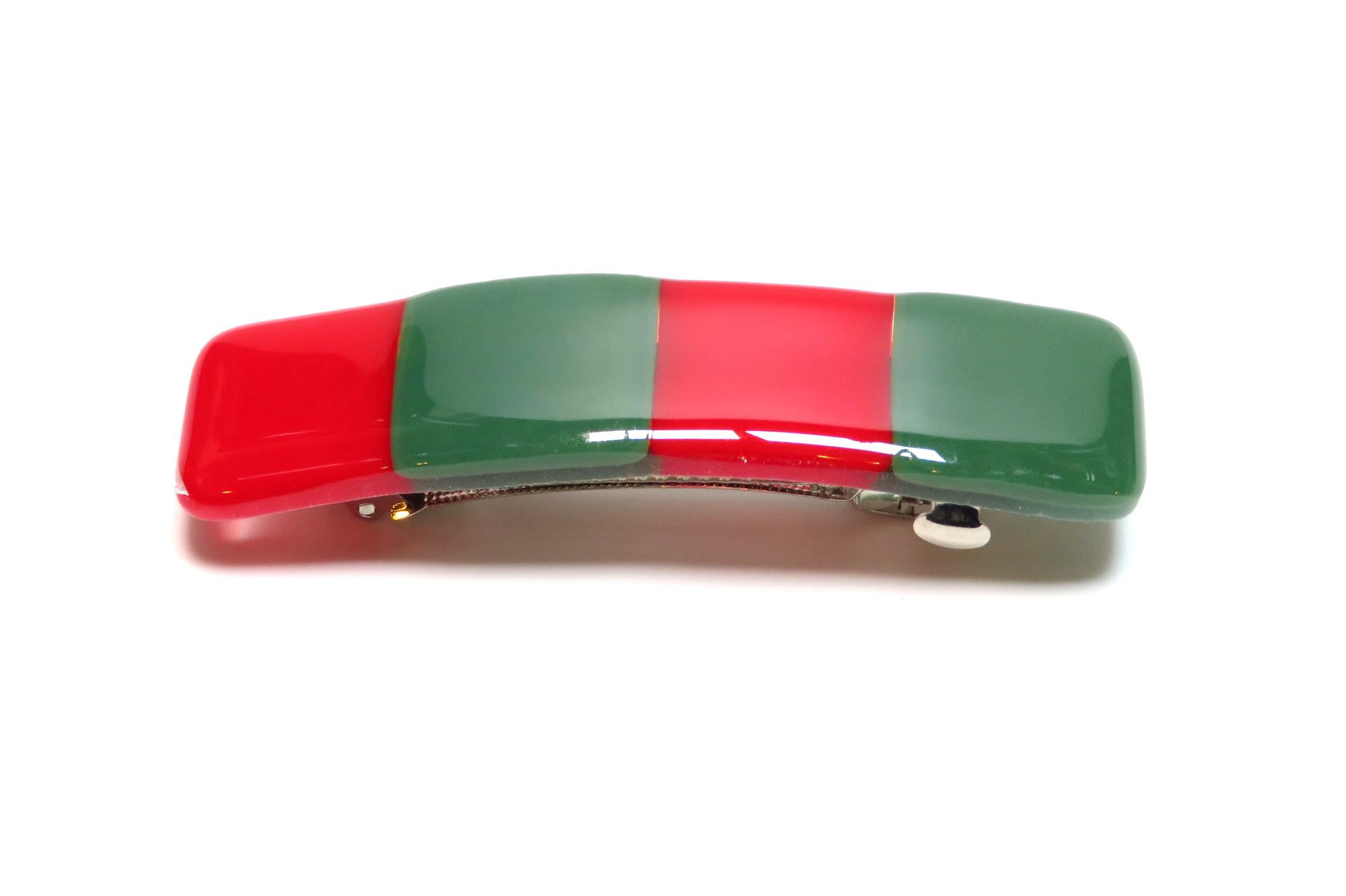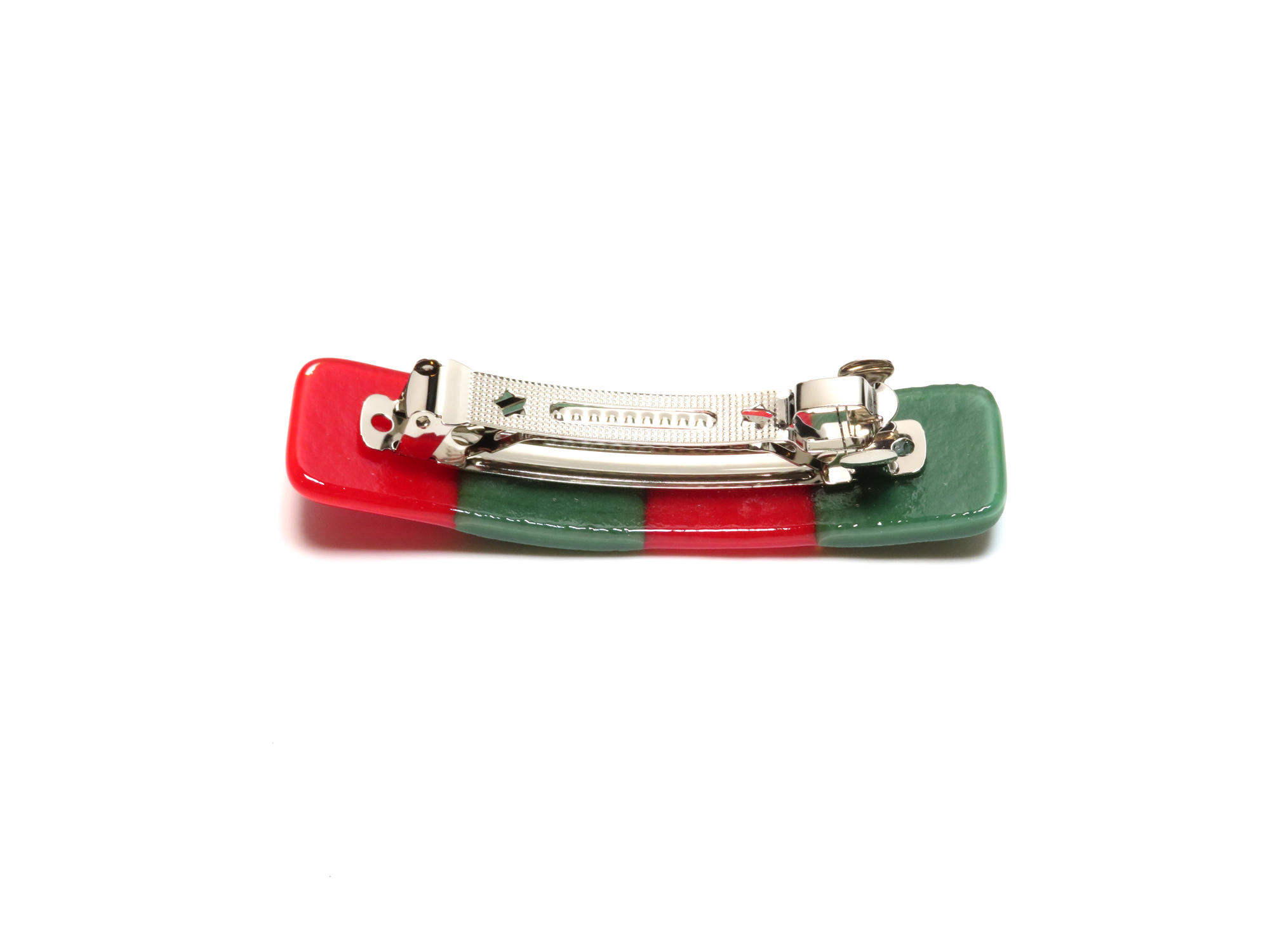 Celebrate the holiday season in style with this handcrafted fused glass barrette, designed especially for thick hair. Featuring a bold red and green color block pattern, this festive accessory adds cheerful elegance to your Christmas and winter outfits — perfect for holiday gatherings, family photos, and gift giving.