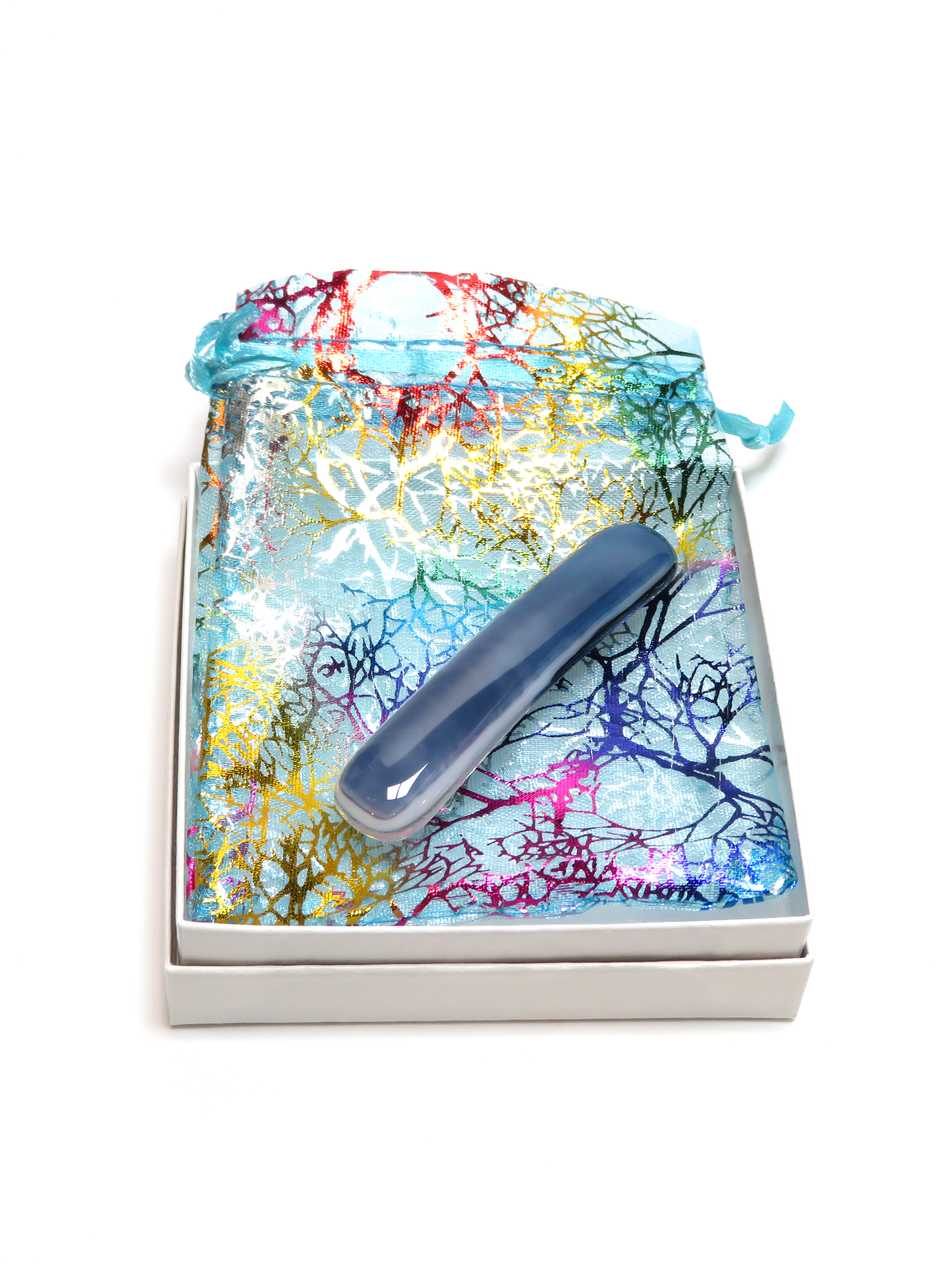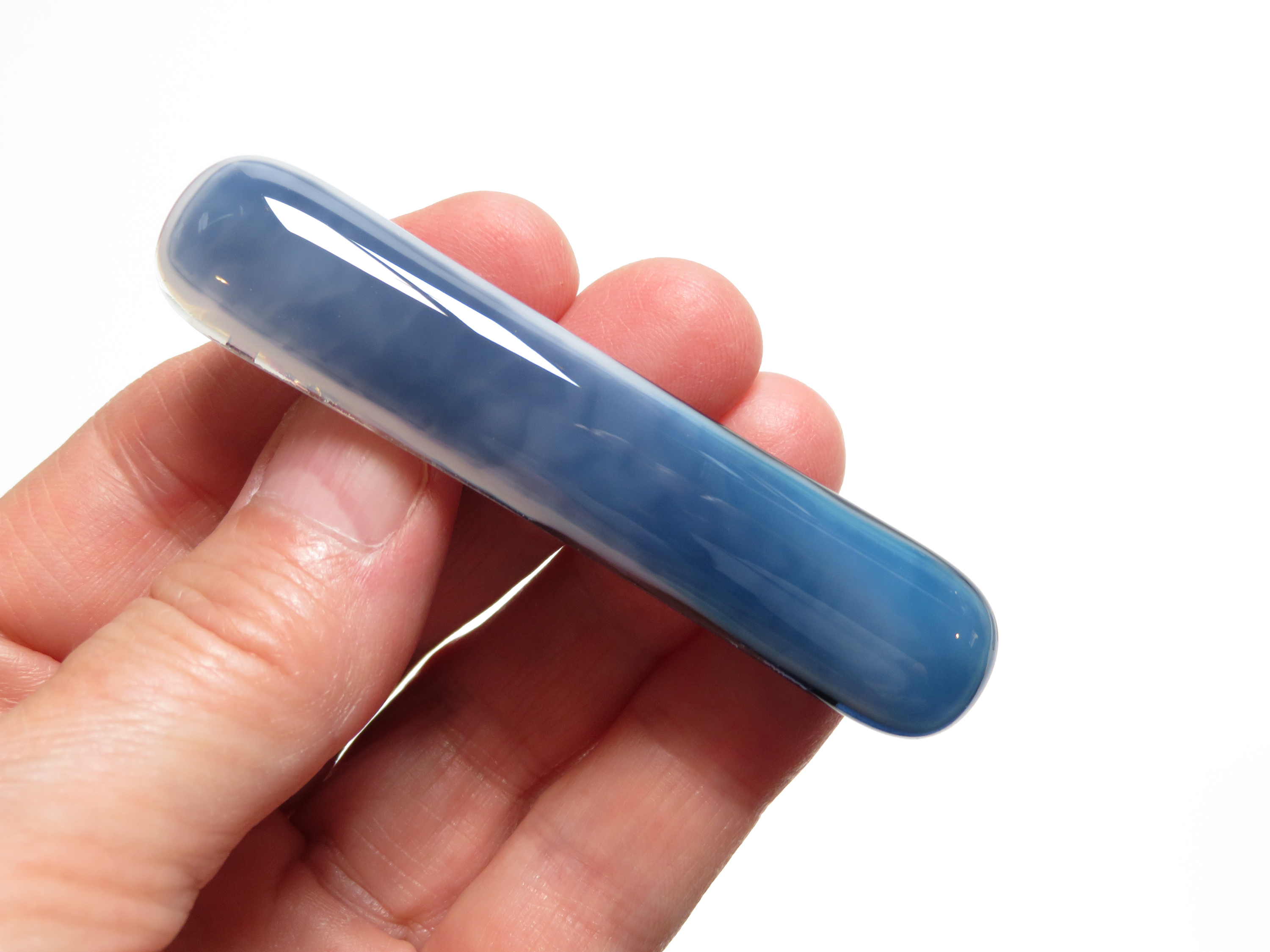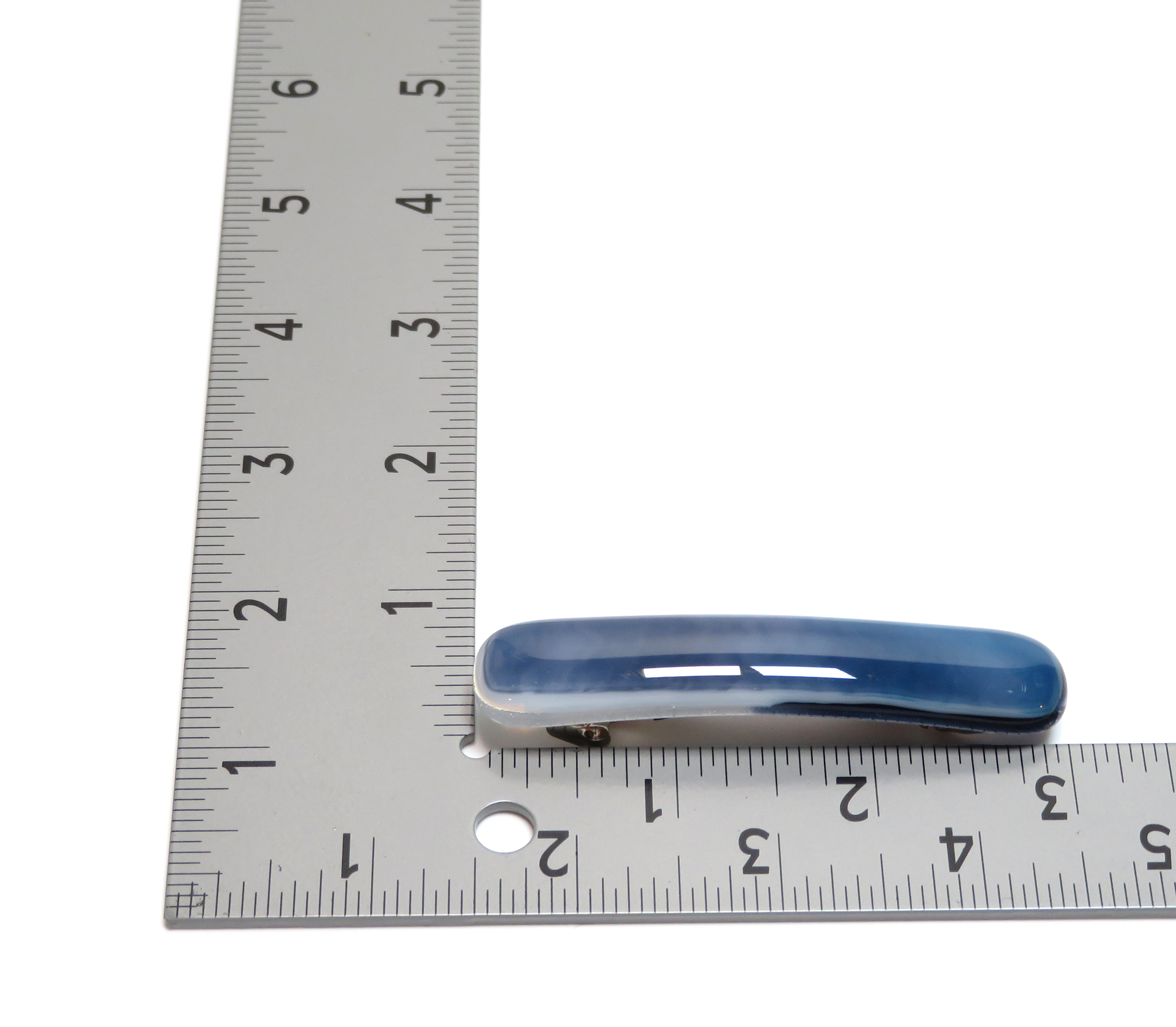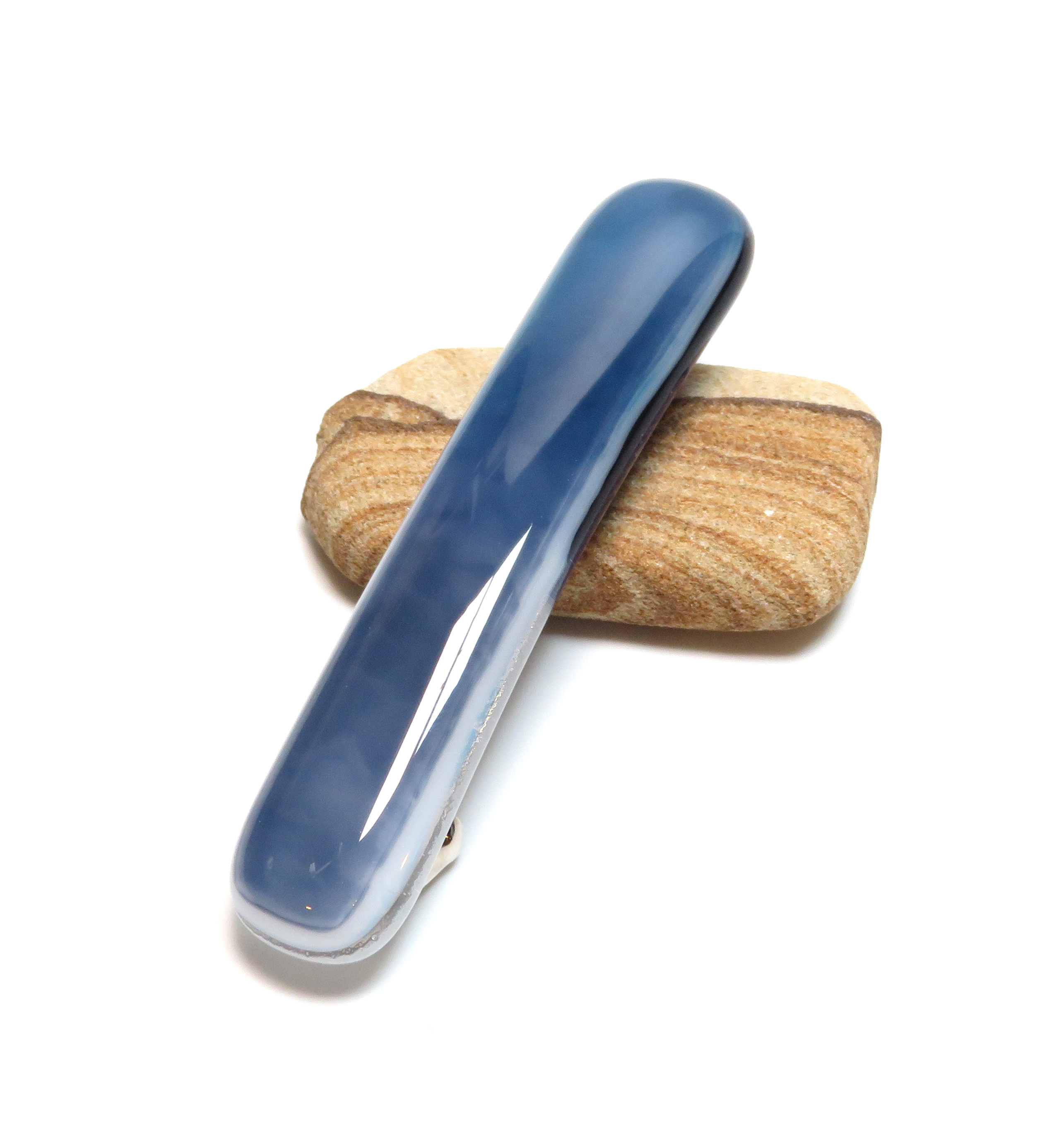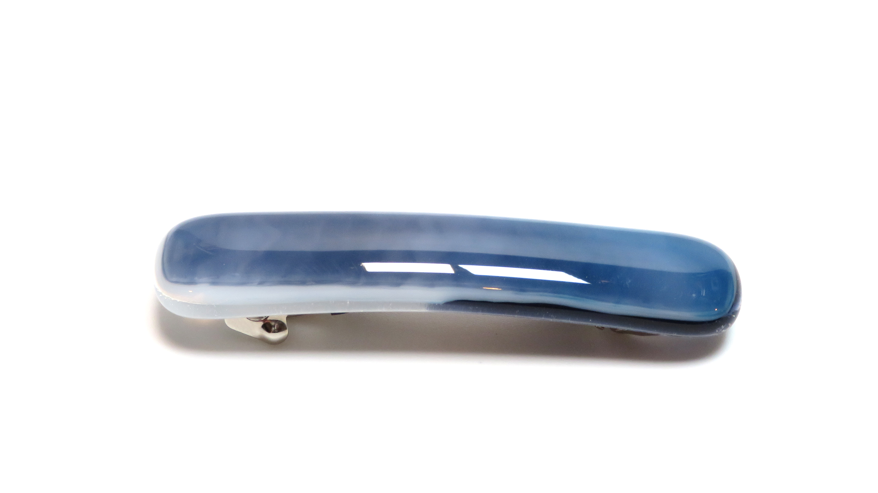 Add a touch of artisan elegance to your look with this handcrafted fused glass barrette. Designed in shades of blue streaky art glass, this lightweight hair clip is perfect for thin hair and brings a pop of color to everyday styles or special occasions.