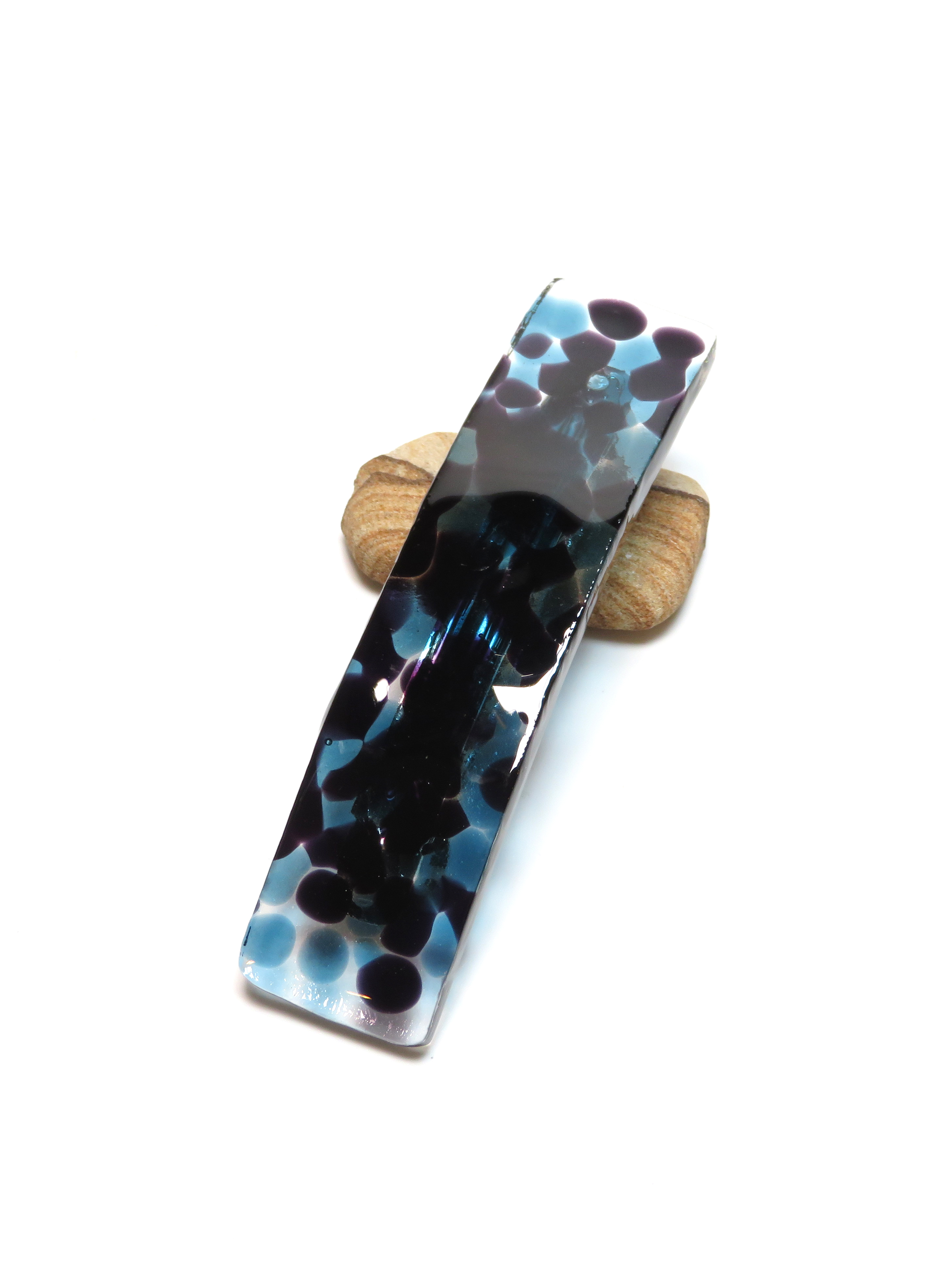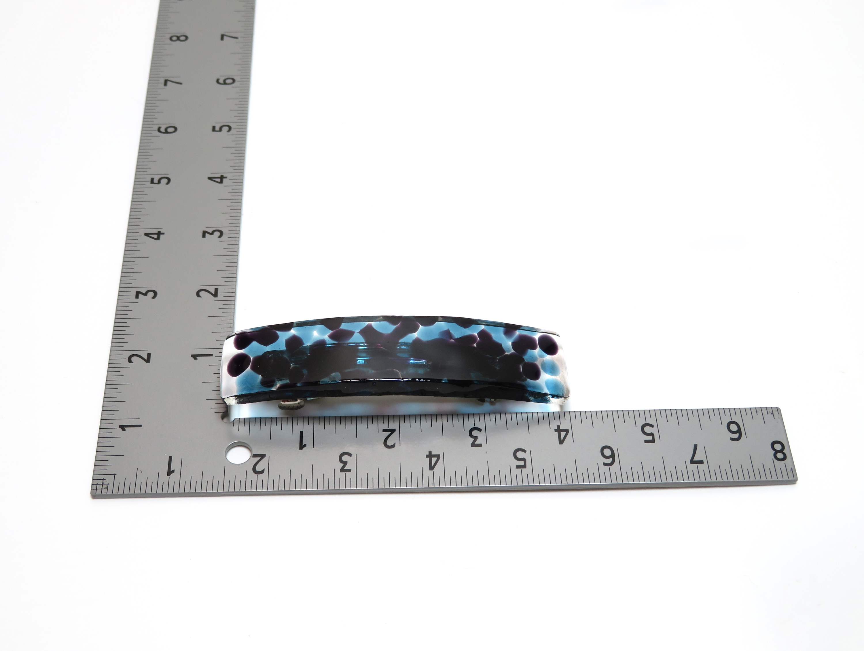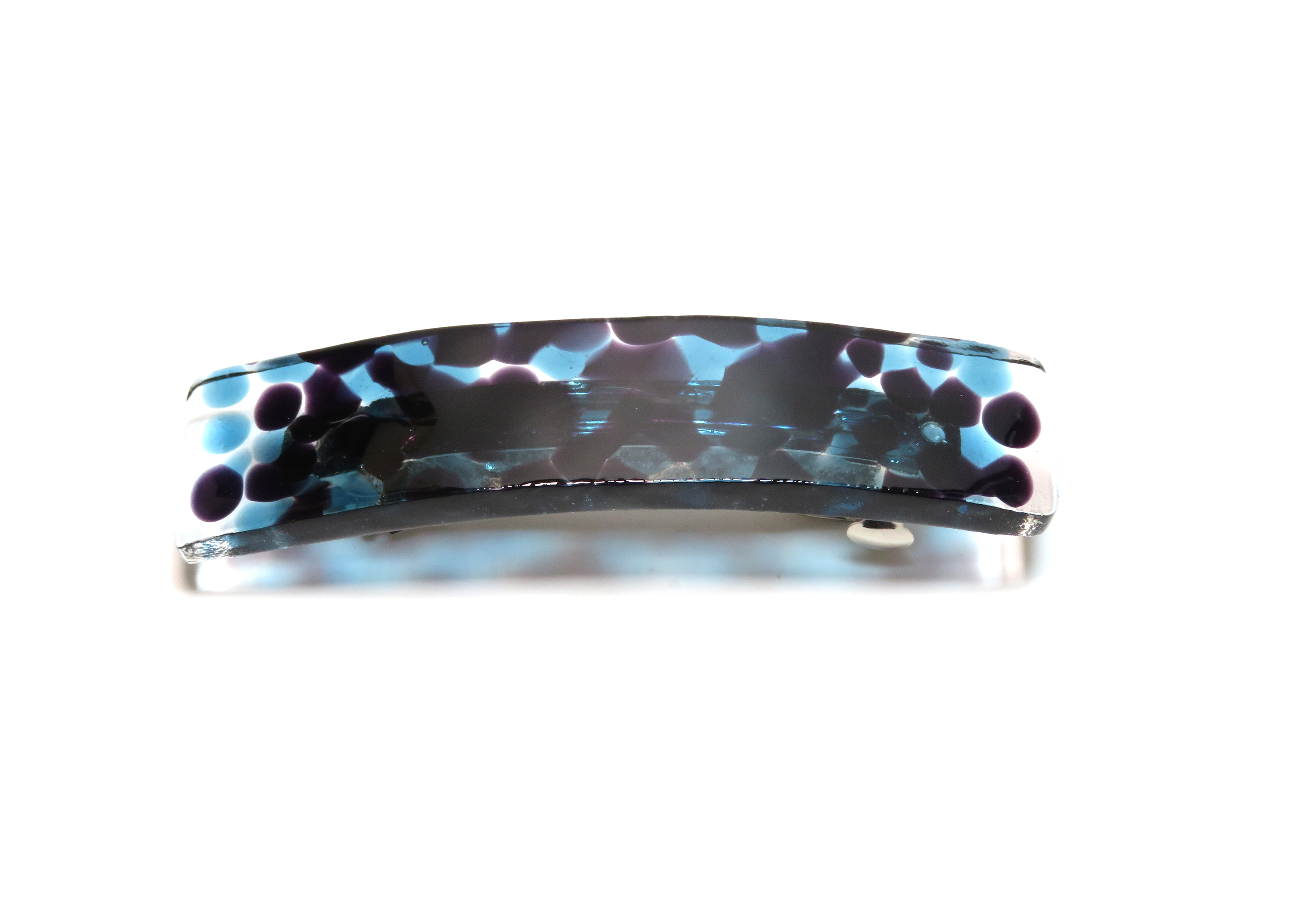 This elegant 4-inch fused glass barrette features blue and purple tones created with crushed glass. The sturdy French clip is ideal for thick hair, making it both stylish and practical.