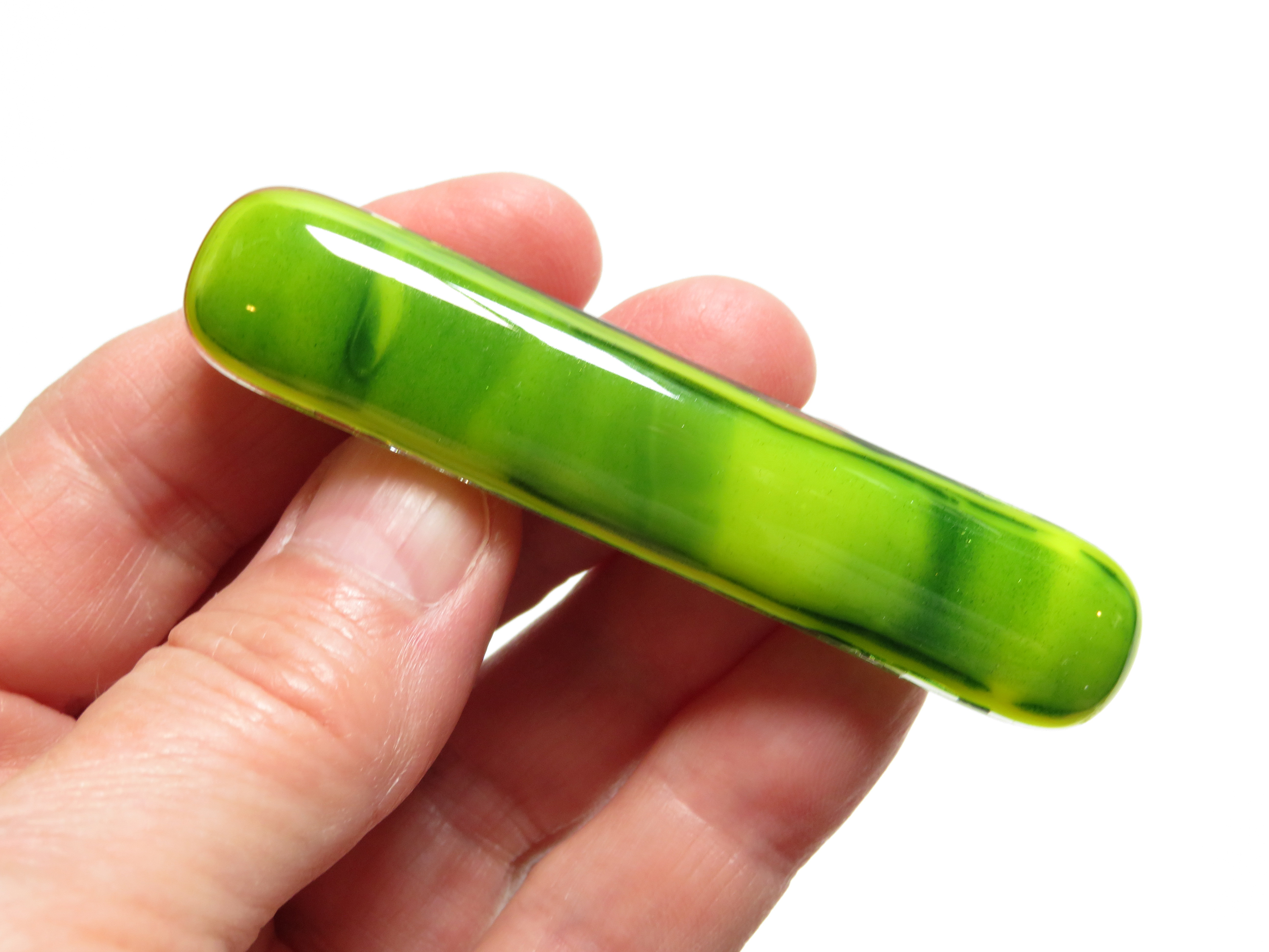 This green fused glass handcrafted hair barrette is the perfect gift for anyone with fine hair. It is made with high-quality materials and expert craftsmanship in the USA, ensuring that it is both durable and beautiful.