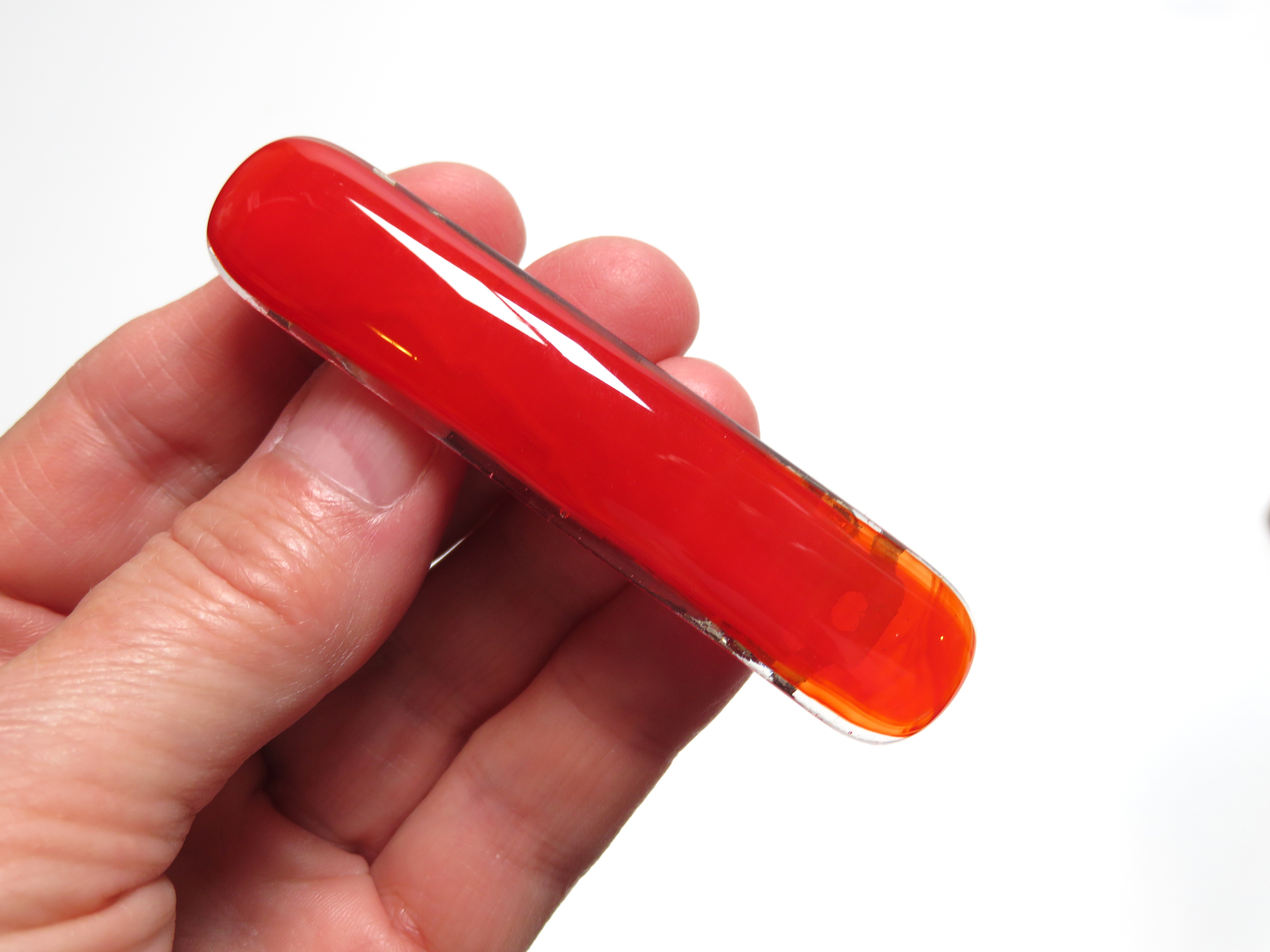 Add a touch of artisan elegance to your look with this handcrafted fused glass barrette. Designed in shades of red streaky art glass, this lightweight hair clip is perfect for thin hair and brings a pop of color to everyday styles or special occasions.