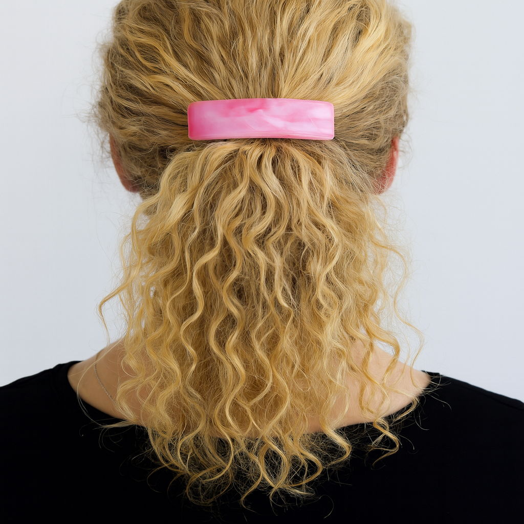 Designed for thick hair, it features rich shades of pink and white that flow together like polished stone, creating a one-of-a-kind accessory that’s both elegant and durable. Perfect for everyday wear or as a thoughtful gift.