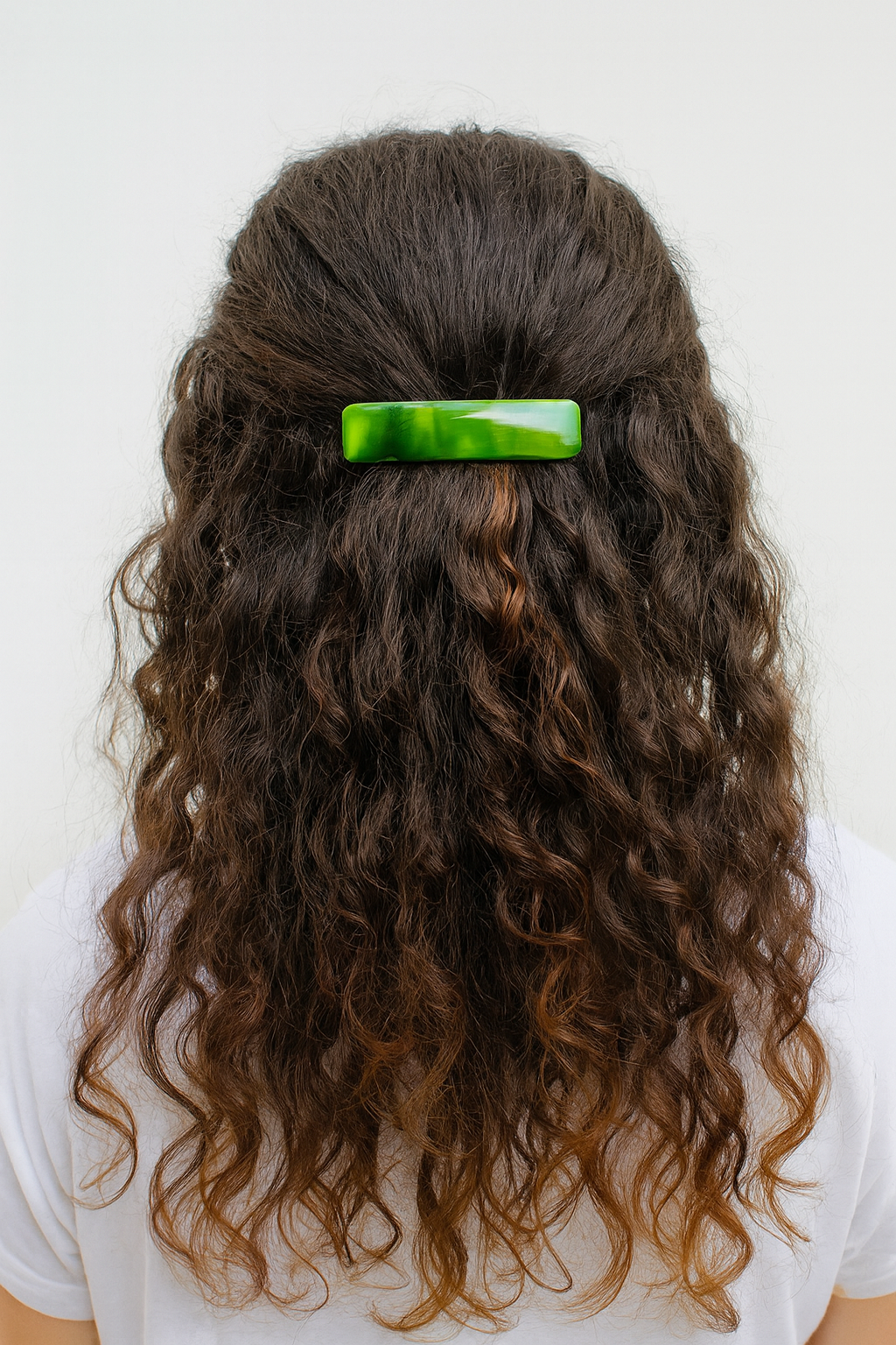 Designed for thick hair, it features rich shades of green that flow together like polished stone, creating a one-of-a-kind accessory that’s both elegant and durable. Perfect for everyday wear or as a thoughtful gift.