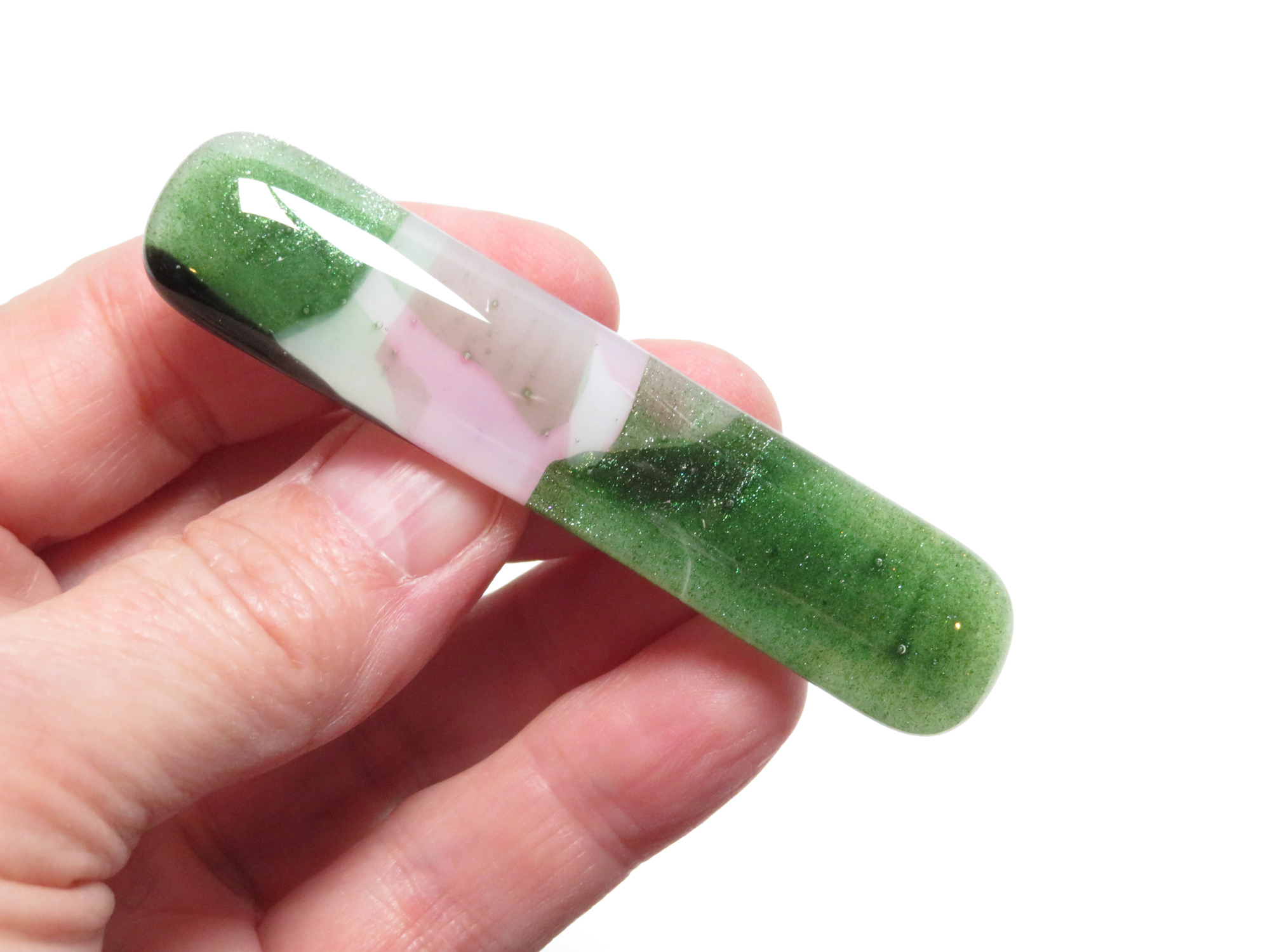 Add a soft, nature-inspired touch to your hairstyle with this handmade fused glass barrette, sized perfectly for fine or thin hair. This 3-inch barrette is kiln-fired into a smooth, glossy, one-of-a-kind piece.