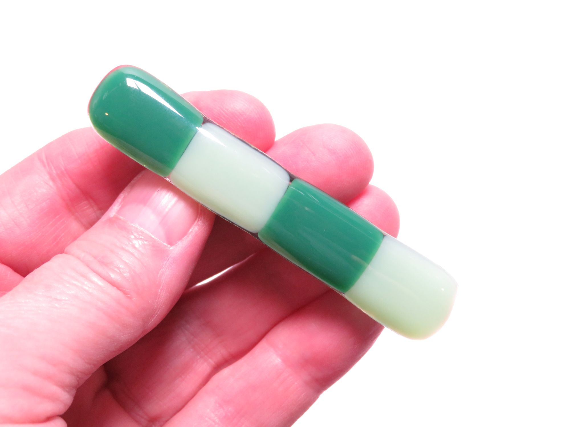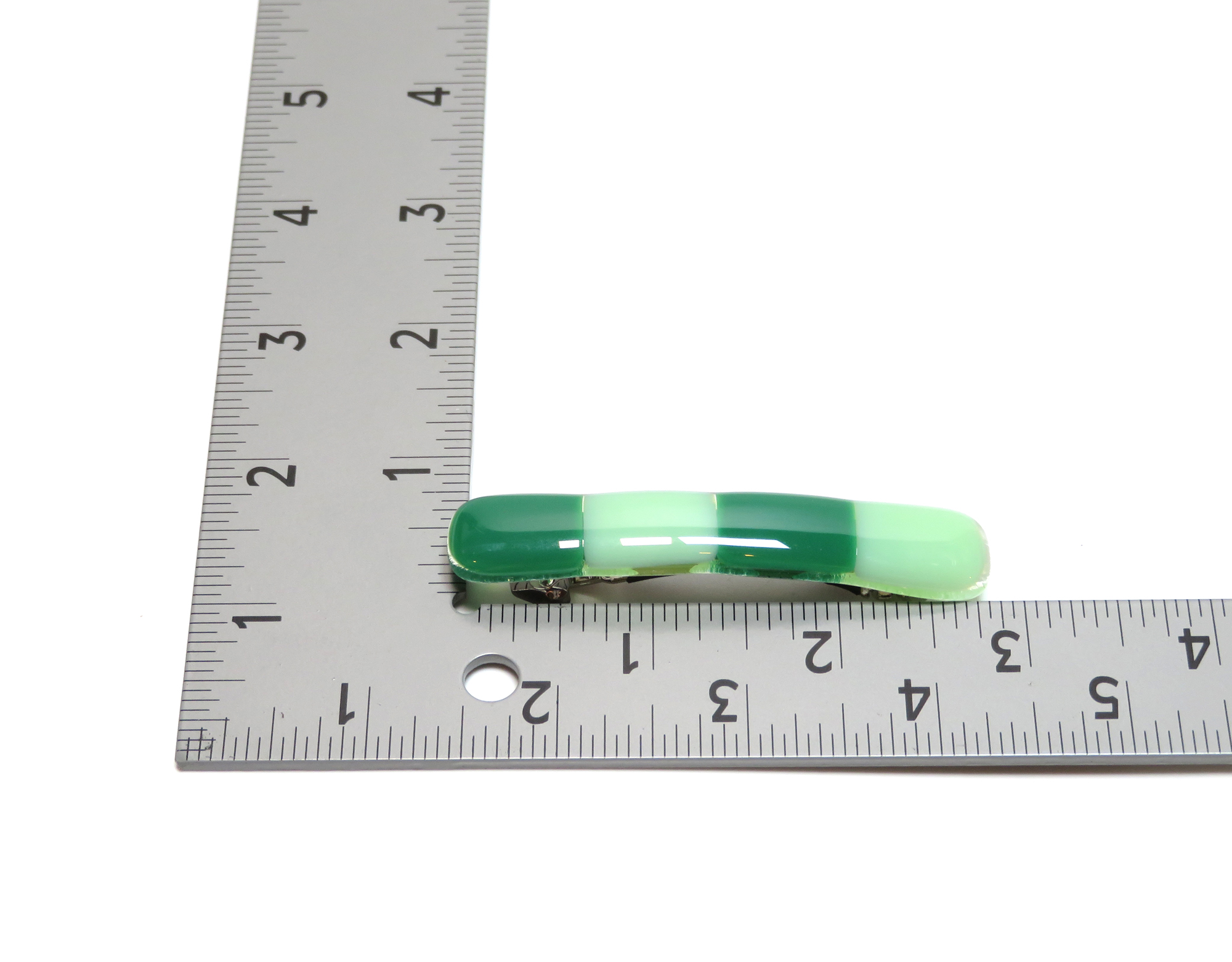 Handmade Green 3-inch Fused Glass Barrette for Fine Hair