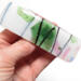 ❤ Pastel botanical palette – soft greens, pinks, and hints of blue layered over crisp white glass