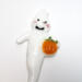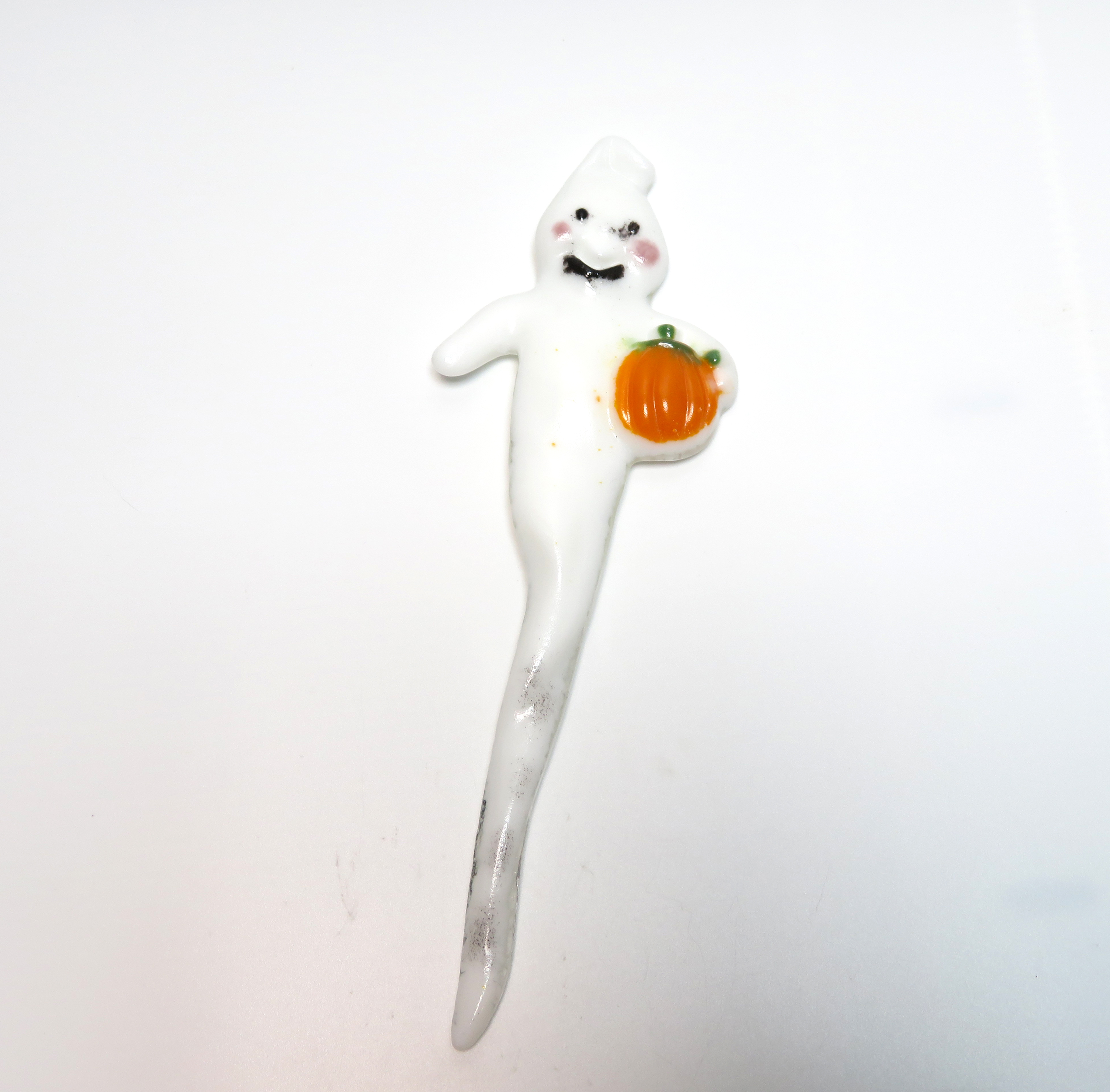 Add a touch of spooky charm to your plants with this handcrafted fused glass ghost planter stake! Featuring a cheerful ghost face with white and orange details, this unique Halloween decoration is perfect for flower pots or the garden. A fun way to dress up your plants for fall, or give as a thoughtful seasonal gift.