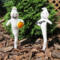 These garden stakes are made from crushed colored glass and powder using a mold and melted in a glass kiln.